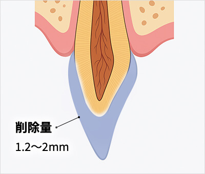 クイックビューティべニアは、0.3〜0.5mm程度の極薄素材を使用するため、歯を削ることなく装着できます。従来のラミネートべニアやクラウンのように歯を削る必要がなく、歯質を残しながら見た目を整えられる治療法です。歯を削ることに不安があるかたにもおすすめの治療法です。