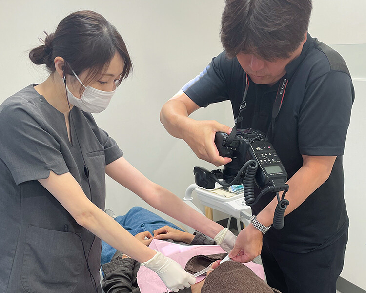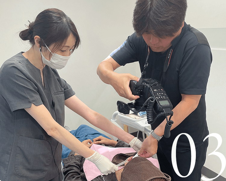 理想の仕上がりをシミュレーションするために、お顔や口元の写真撮影と口腔内スキャナーを使用して歯型の採取を行います。印象剤は使用しないため、嚥下反応の心配もございません。歯の色や形、バランスを正確に確認し、自然で美しい見た目になるよう丁寧に設計します。緊張なさらず、リラックスしてお受けください。
