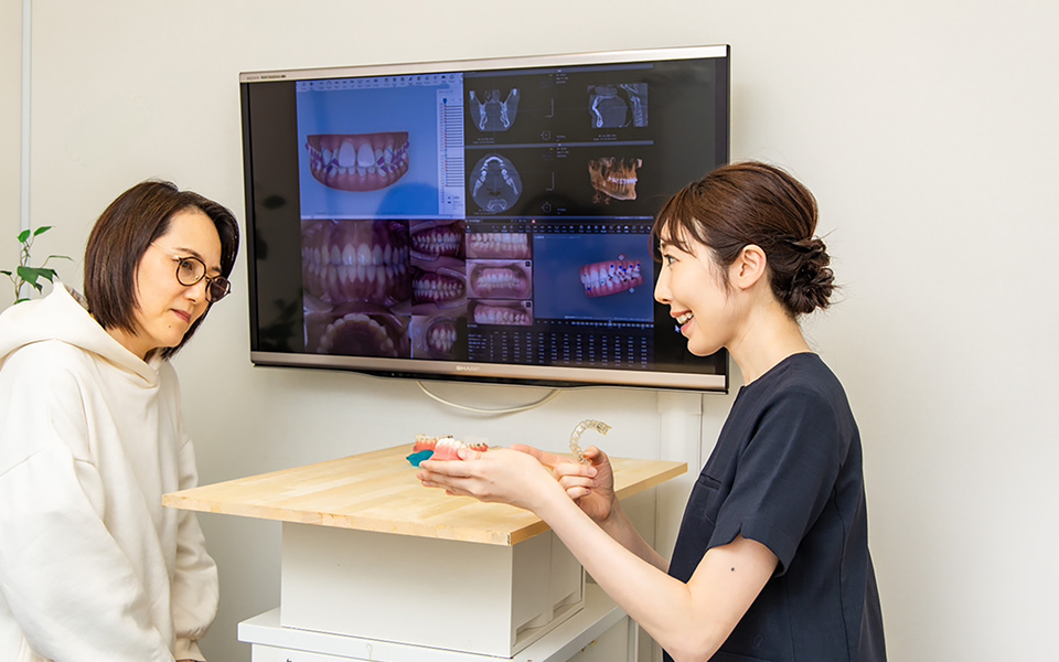 まずはお悩みや理想の口元について丁寧にカウンセリングいたします。治療内容・期間・費用などもわかりやすくご説明し、ご納得いただいたうえで治療を進められるよう心がけています。無料相談も承っておりますので、お気軽にご相談ください。