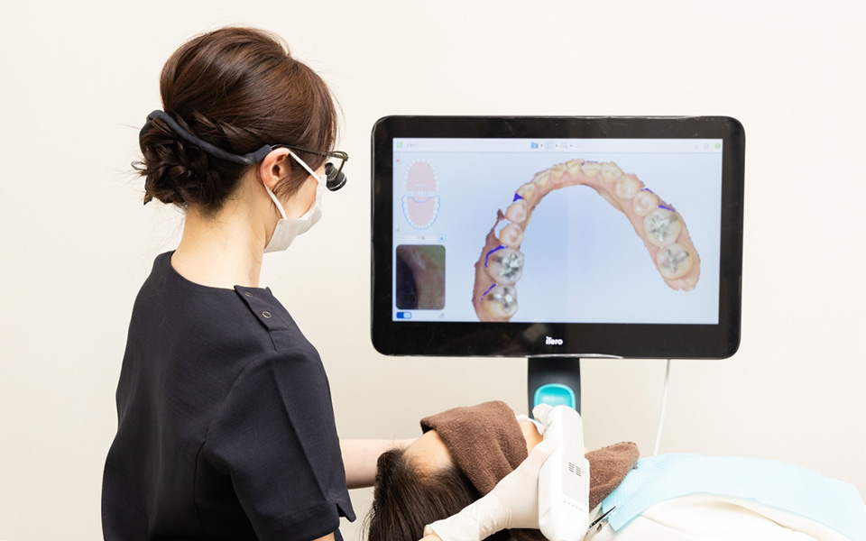 より美しく精密な仕上がりを実現するために口腔内スキャナー(iTero)を導入しています。非常に高い精度で歯の形状を読み取ることができ、わずかな凹凸や噛み合わせのバランスまで正確に再現します。スキャンしたデータをその場で3D画像として確認できるため、治療内容をわかりやすく理解でき、安心して治療を受けていただけます。